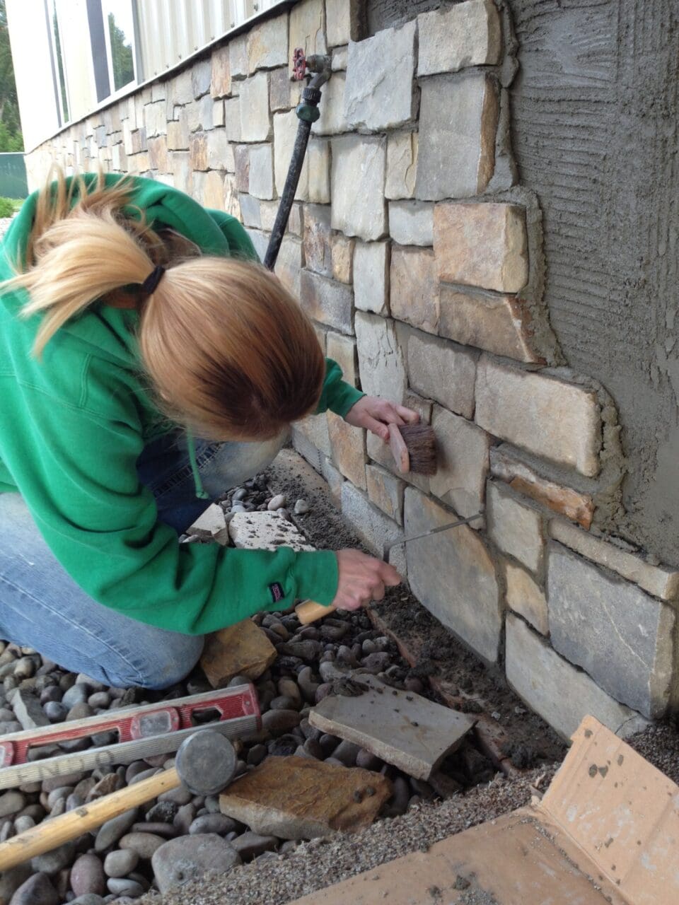 Grouting the joints: After the stone has been applied to the wall surface, use a grout bag to fill the joints with mortar, forcing grout into any voids. Any mortar that accidentally gets on the stone should be allowed to set until dry and crumbly, and then brushed off with a dry whisk broom.