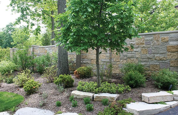 Beaver Creek Castlestone is tan with rust. This style is a selection of stones that are set in a square and rectangular pattern dominated with taller or blocky pieces. Split all 4 edges.