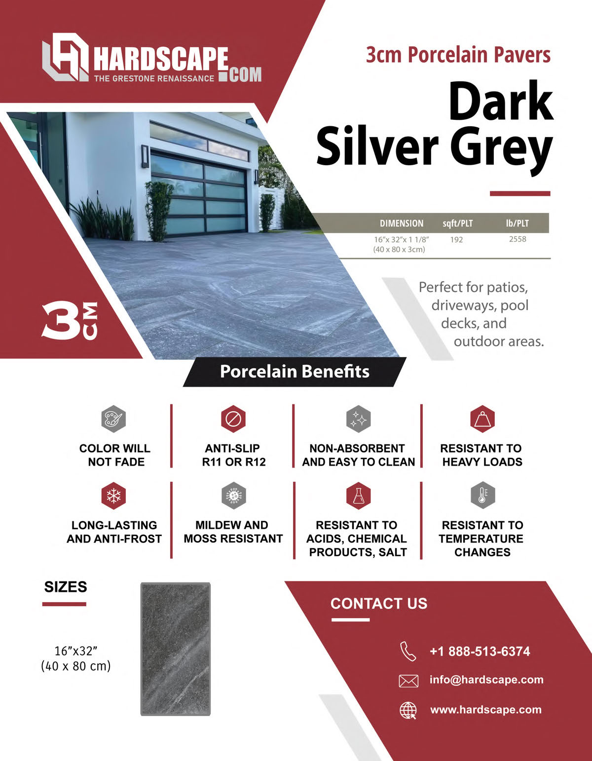 Dark Silver Grey Porcelain Pavers: a sleek and modern addition to any outdoor space. With their deep grey hues and contemporary finish, these pavers offer a sophisticated touch to your landscape design. Crafted for durability and resilience, they withstand the elements while maintaining their sleek appearance. Elevate your outdoor area with the timeless elegance of Dark Silver Grey Porcelain Pavers, where style meets durability.
