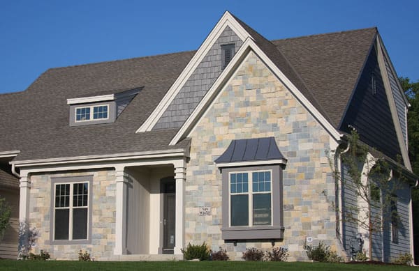 Grey/Buff Chateau Castlestone is beige, gold, tan and grey. This style is a selection of stones that are set in a square and rectangular pattern dominated with taller or blocky pieces. Split all 4 edges.