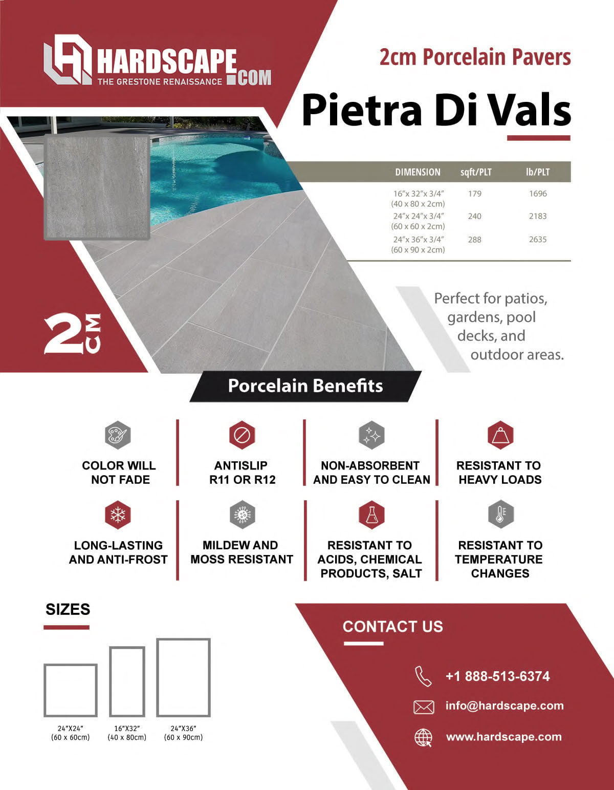 Sizes: 16"x32" & 24" x 24"- Also available at 3/4" thickness in 12"x24", 24"x24", 24"x36" & 16"x32"