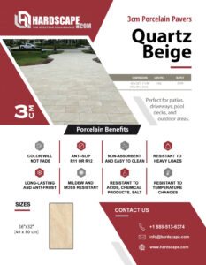 Quartz Beige Porcelain Pavers, a fusion of contemporary style and enduring resilience. With their neutral beige tones and subtle veining, these pavers exude understated elegance, perfect for any outdoor space. Crafted with precision and durability, they offer lasting beauty that withstands the test of time. Elevate your landscape with the timeless sophistication of Quartz Beige Porcelain Pavers, where style meets strength.
